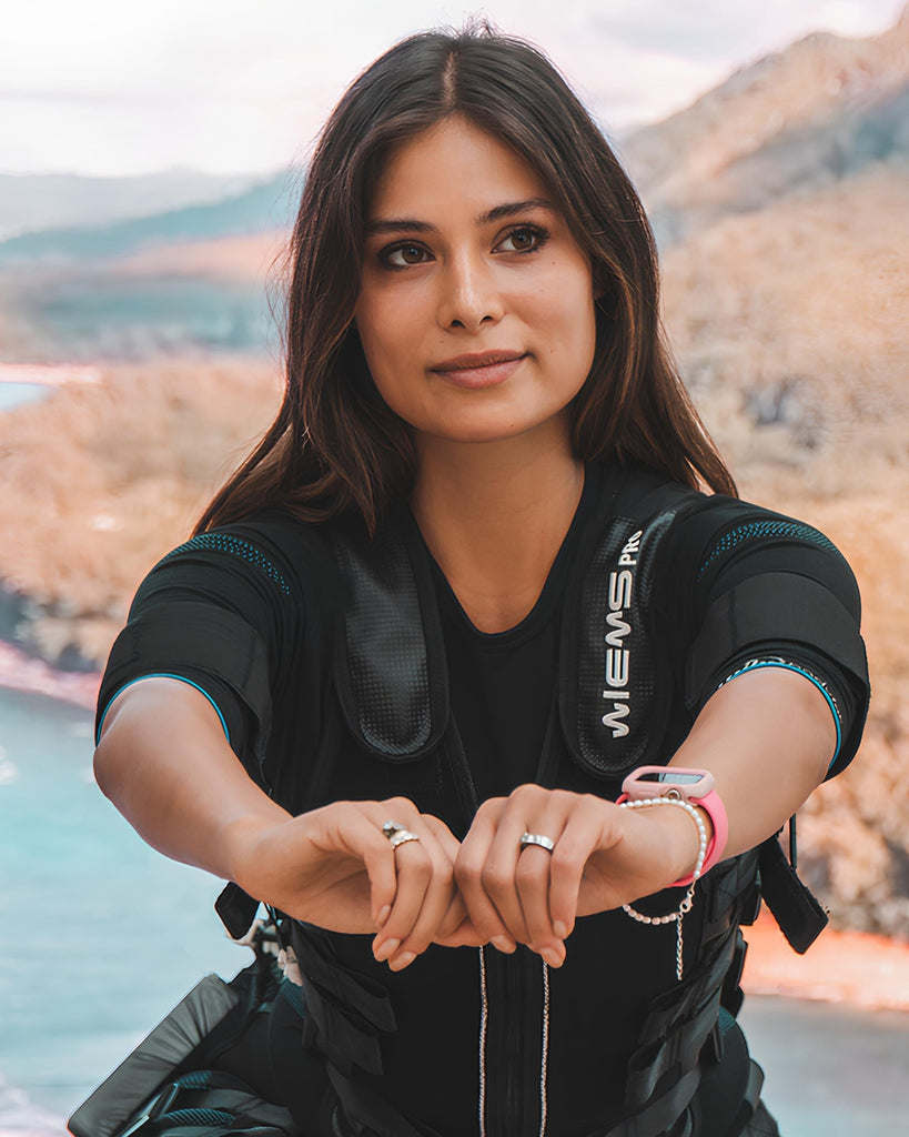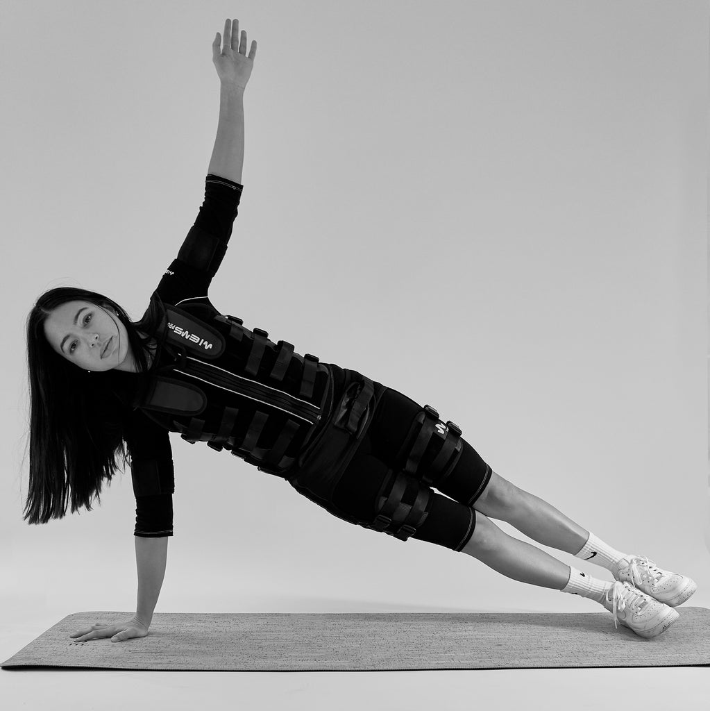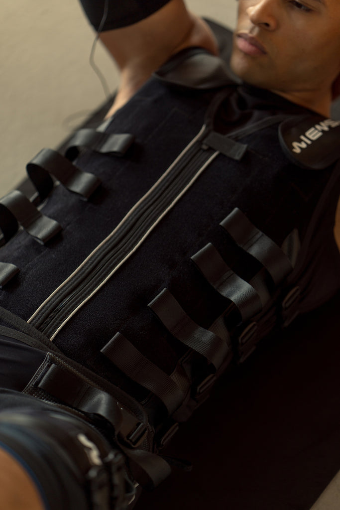 EMS is short for Electrical Muscle Stimulation, also known as Electromyostimulation. It works by sending low-frequency impulses to manually contract your muscle fibres while you exercise.